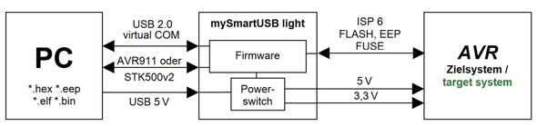 Hinweis zur Taktfrequenz: Im Gegensatz zu den anderen myAVR Programmern hat der mySmartUSB light einen